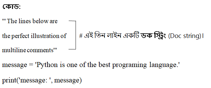 বিশেষ দ্রষ্টব্য: ডক স্ট্রিং (Doc string) সম্পর্কে আমি পরবর্তীতে বিস্তারিত আলোচনা করব।