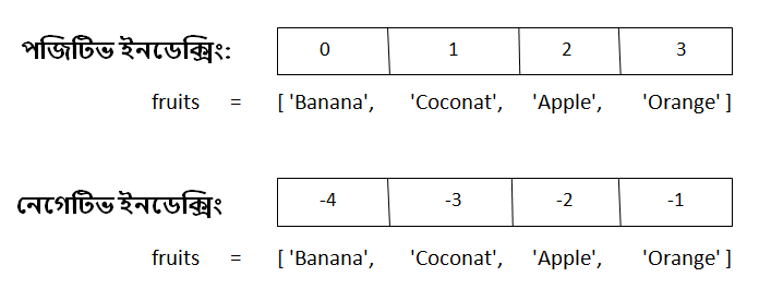 এবং fruits[-4] এর আউটপুট হবে Banana।