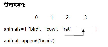 এখন আমরা পাইথন কোডে append() মেথডের ব্যবহার দেখব।